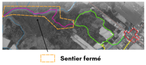 Le sentier de la tourbière (mauve) est présentement fermé dû à la nécessité d’entretien. Pour votre sécurité, nous vous prions de respecter la signalisation en place et de ne pas emprunter ce sentier.